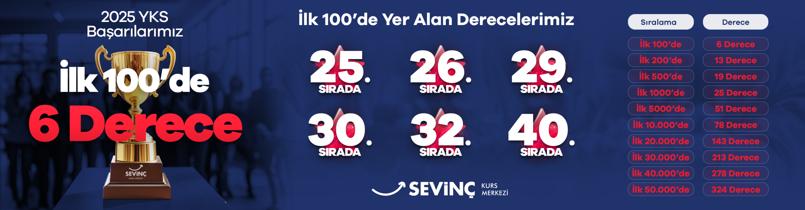 Sevinç Kurs Merkezi, sadece sınavlara değil, geleceğe hazır bireyler yetiştirmeyi hedefler. Disiplinli çalışma alışkanlığı, yüksek motivasyon, öz farkındalık ve stratejik düşünme becerileriyle öğrencilerimizi hayal ettikleri liselere ve üniversitelere bir adım daha yaklaştırıyoruz.
